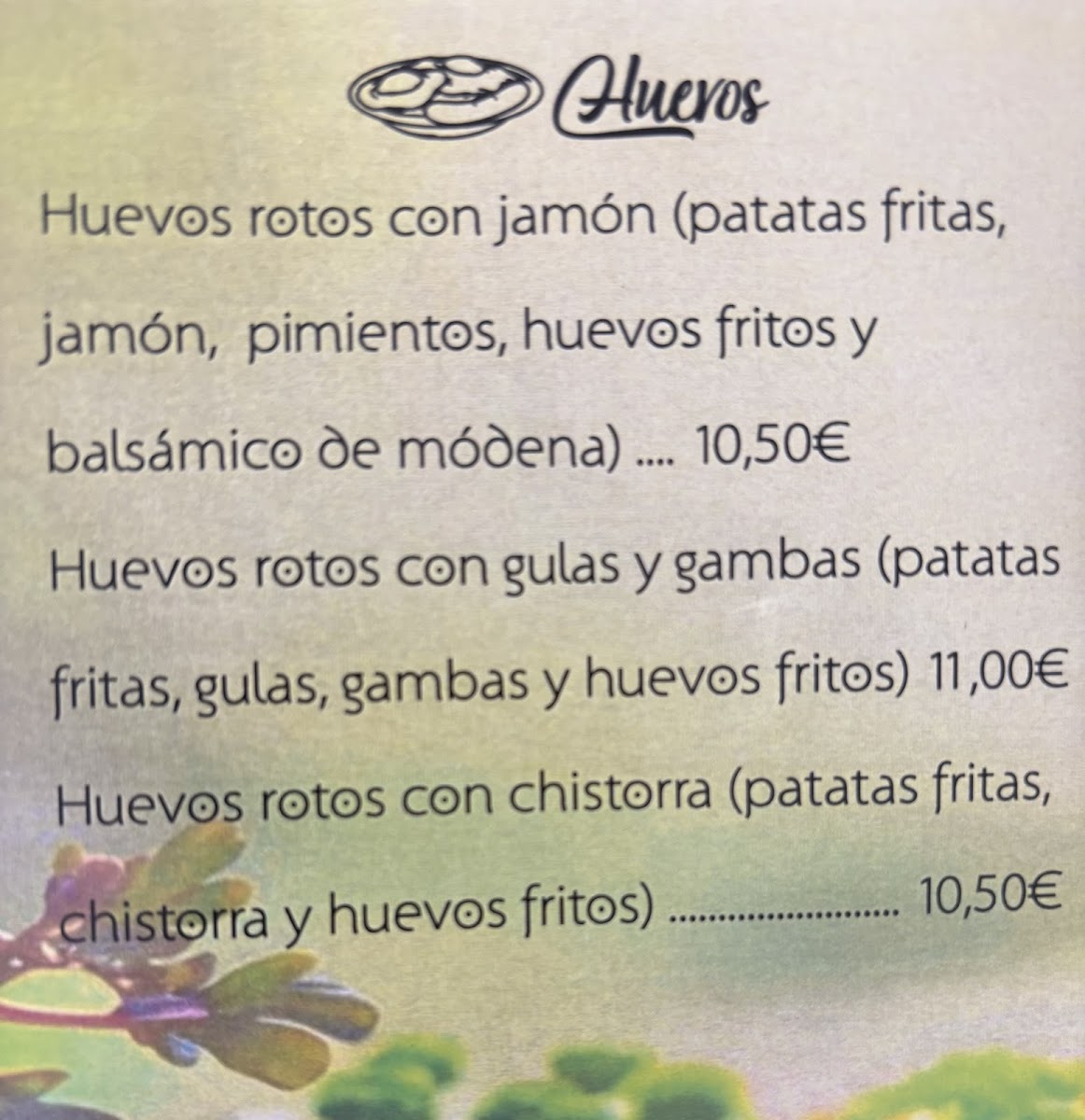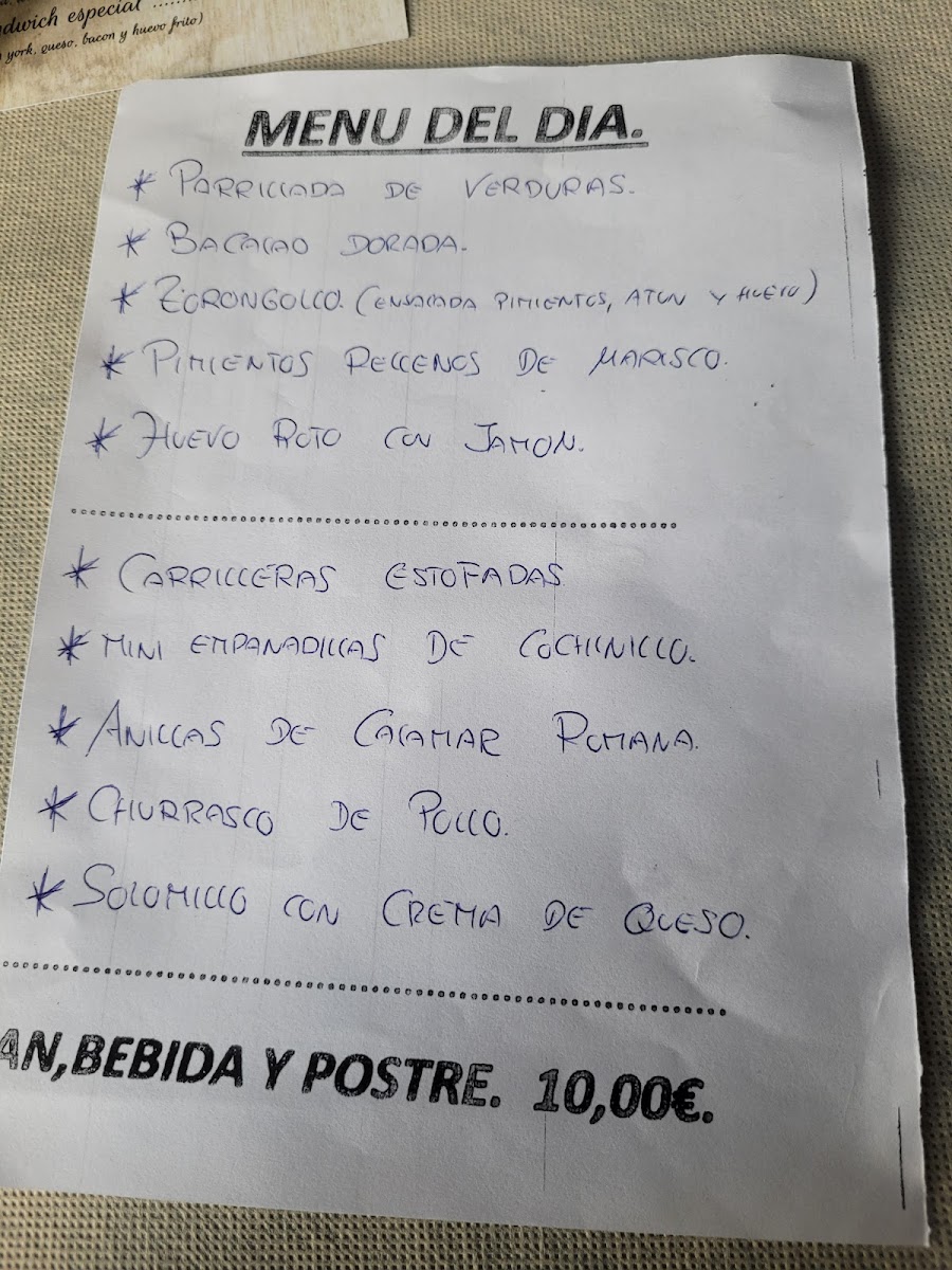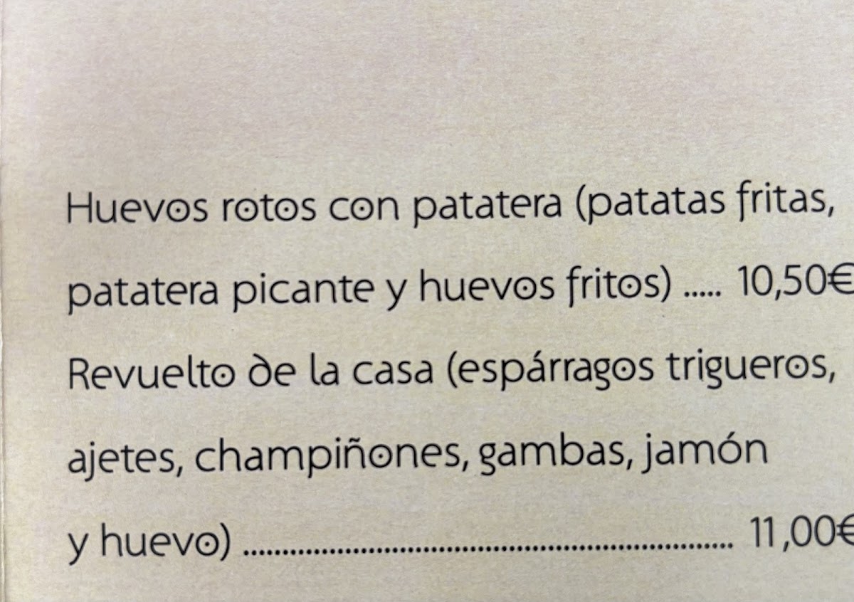 The menu offers a variety of traditional Spanish cafe dishes, including both fixed-price daily menus and an à la carte selection. Visitors can find a range of starters, main courses, and desserts featuring local ingredients and classic recipes. Typical offerings include egg dishes, soups, seafood, meat specialties, salads, and assorted snacks.